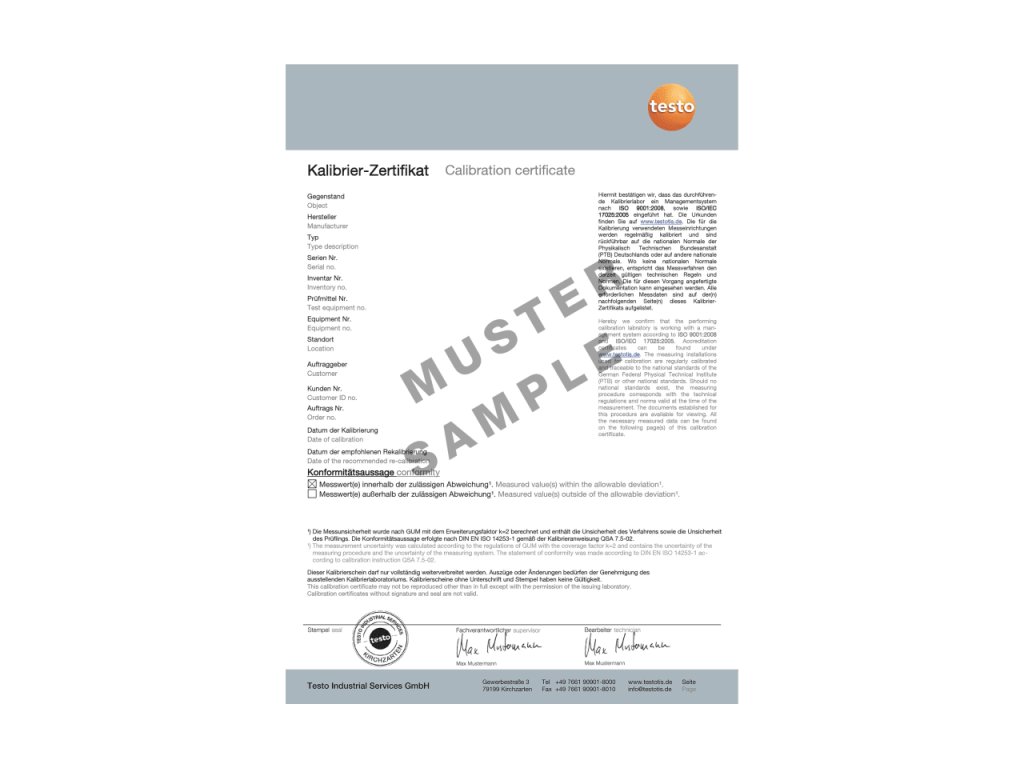 Tento kalibrační certifikát ISO potvrzuje, že váš přístroj je zkalibrován. Kalibrace se provádí podle normy ISO.