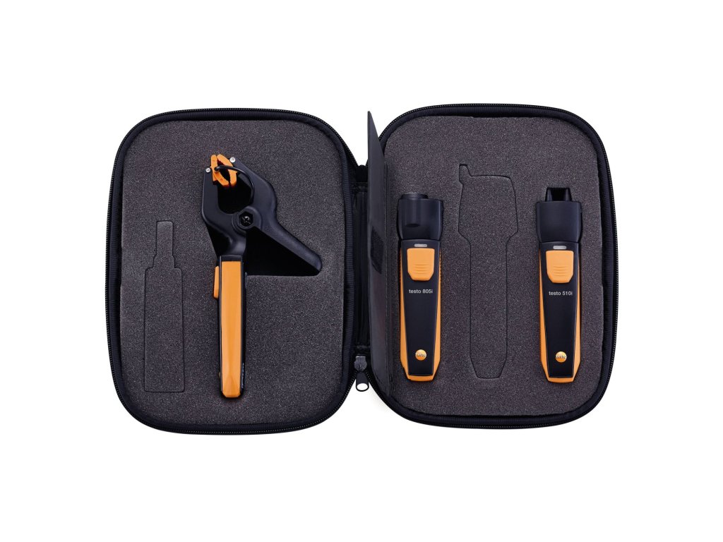 Kompaktní sada vytápění s klešťovým teploměrem testo 115i, přístrojem pro měření diferenčního tlaku testo 510i a infračerveným teploměrem testo 805i je ideální pro nejdůležitější topenářské měřicí úlohy. Ve spojení s chytrým telefonem nebo tabletem umožňuje měření a kontrolu všech teplot a tlaků topného systému. Uživatelé mohou pohodlně odečítat naměřené hodnoty prostřednictvím aplikace nainstalované na koncovém zařízení. Pro IR měření teploty, například podlahového vytápění, umožňuje aplikace dokumentaci měření s obrazem, s naměřenou teplotou a s označením bodu měření. Je také možné rychle změnit zobrazované parametry měření. Nabídky aplikace, jako je zkouška poklesu tlaku včetně upozornění, podporují topenáře při jejich každodenní práci. Všechna naměřená data jsou uvedena buď jako diagram, nebo v tabulce. Zpráva o naměřených datech může být odeslána přímo e-mailem ve formátu PDF nebo v Excelu. Měřicí přístroje mohou být pohodlně přepravovány v praktickém Chytrém pouzdře testo, kde jsou po ruce vždy, když je potřeba.- Bezkontaktní měření teploty, měření teploty přívodu a zpátečky a také tlaku přívodu plynu