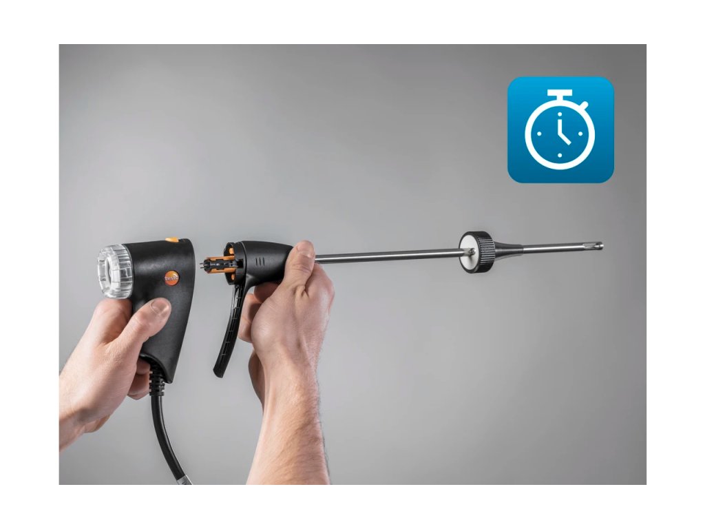 - Všestrannost a rychlá výměna sond: výhoda rychlé výměny sond a multifunkční rukojeti pro připojení různých trubic sond (každá dostupná samostatně k objednání). Můžete například použít delší trubice sond pro potrubí spalin s větším průměrem nebo ohebné sondy pro špatně přístupná místa měření