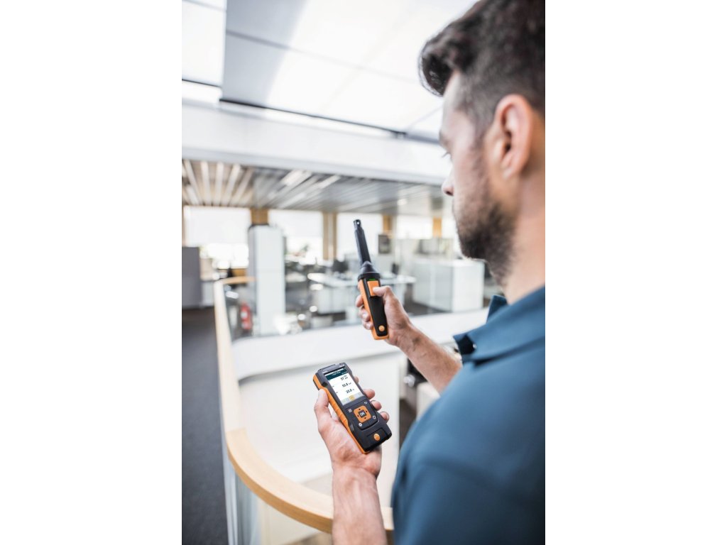 Nebo si pro připojení hlavic sond testo objednejte rukojeť s kabelem. Ta má výhodu tehdy, když není k dispozici signál Bluetooth. Pokud se musí v budoucnu vyměnit senzory (CO2, vlhkostní, teplotní) můžete vyměnit hlavici sondy.