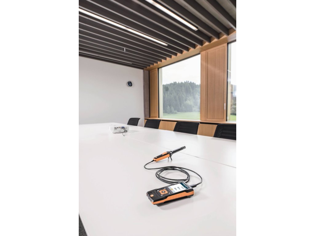 Pro posuzování kvality vzduchu v místnosti (Indoor Air Quality): se sondou měříte (za pomoci vhodného měřicího přístroje) koncentraci CO2, vlhkost vzduchu a teplotu vzduchu.- Intuitivní: jasně strukturované menu pro dlouhodobé měření a paralelní měření koncentrace CO2, vlhkosti a teploty vzduchu ve vnitřních prostorech