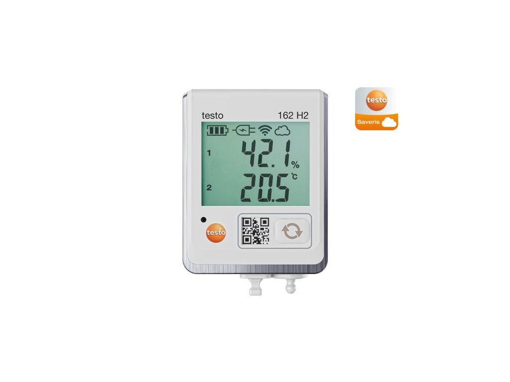 Online záznamník testo 162 H2 je snadno ovladatelný záznamník klimatu s displejem pro sledování teploty a vlhkosti. Testo 162 H2 má vstup pro připojení externího teplotního a vlhkostního senzoru. Online záznamníky testo 162 jsou součástí systému online záznamníků testo 160, který se skládá z hardwarových komponent (testo 160, testo 162, testo 164) a také z platformy testo Saveris Cloud a aplikace testo Smart App. Testo Saveris Cloud je centrální platforma pro data. Naměřené hodnoty je možné zde zobrazit a analyzovat.