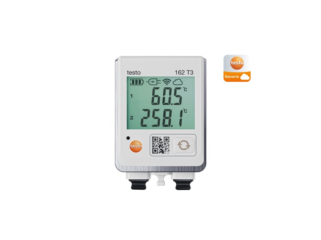 Online záznamník testo 162 T3 je snadno ovladatelný záznamník klimatu s displejem pro sledování teplot. Testo 162 T3 má 2 vstupy pro připojení externích teplotních senzorů (termočlánky). Online záznamníky testo 162 jsou součástí systému online záznamníků testo 160, který se skládá z hardwarových komponent (testo 160, testo 162, testo 164) a také z platformy testo Saveris Cloud a aplikace testo Smart App. Testo Saveris Cloud je centrální platforma pro data. Naměřené hodnoty je možné zde zobrazit a analyzovat.