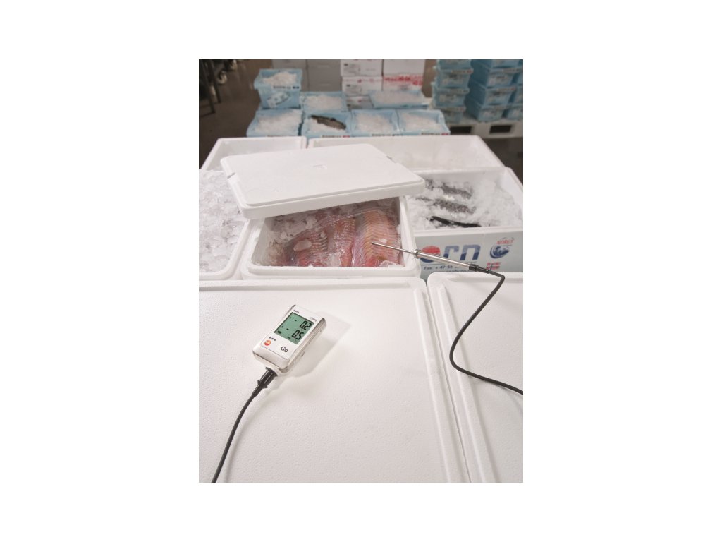 Datalogger teploty testo 175 T2 je vhodný tehdy, když byste rádi jedním přístrojem sledovali teplotu vzduchu a zároveň na druhém kanálu zaznamenávali další teplotu (např. teplotu jádra). Zvláště při skladování potravin se nabízí provádět paralelně kontrolu teploty okolních podmínek a zboží samotného.