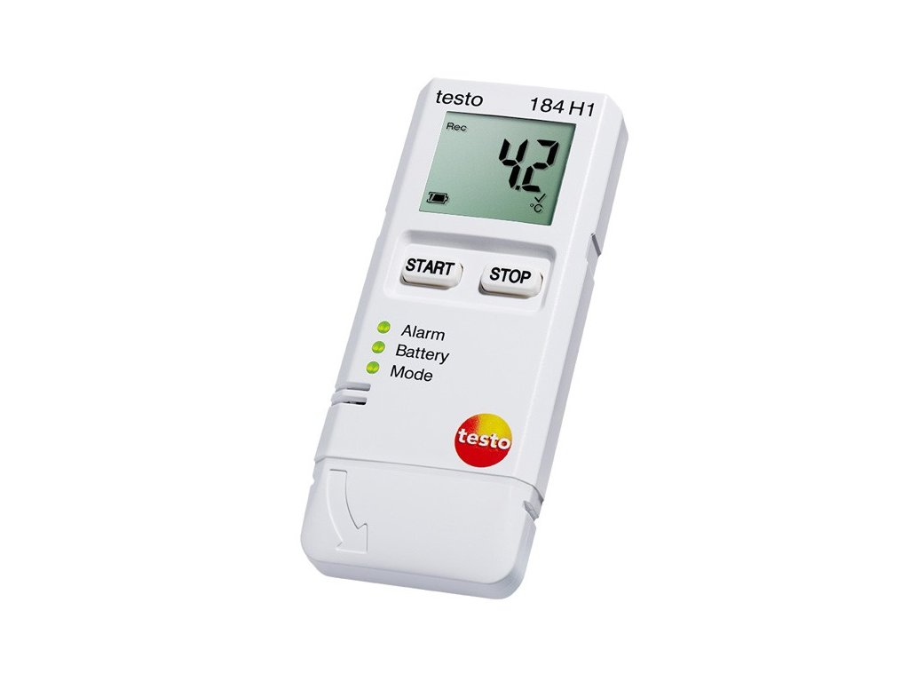 Mini-záznamník testo 184 H1 pro teplotu a vlhkost, neomezená doba použití díky výměnné baterii.