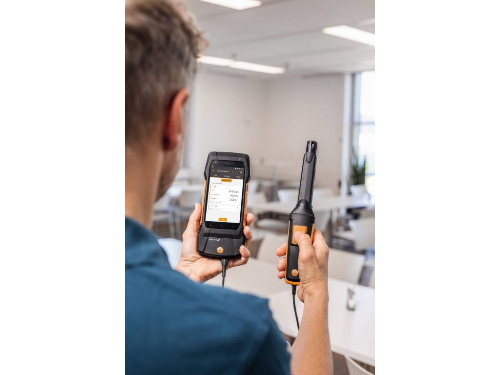 - Dlouhodobá monitorování kvality vzduchu v místnosti: Umožňuje IAQ dataloggeru provádět dlouhodobá měření s měřícím přístrojem testo 400 pro měření klimatických veličin. S měřicím přístrojem můžete měřit kdekoliv jinde, zatímco samostatný datalogger měří kvalitu vzduchu v místnosti