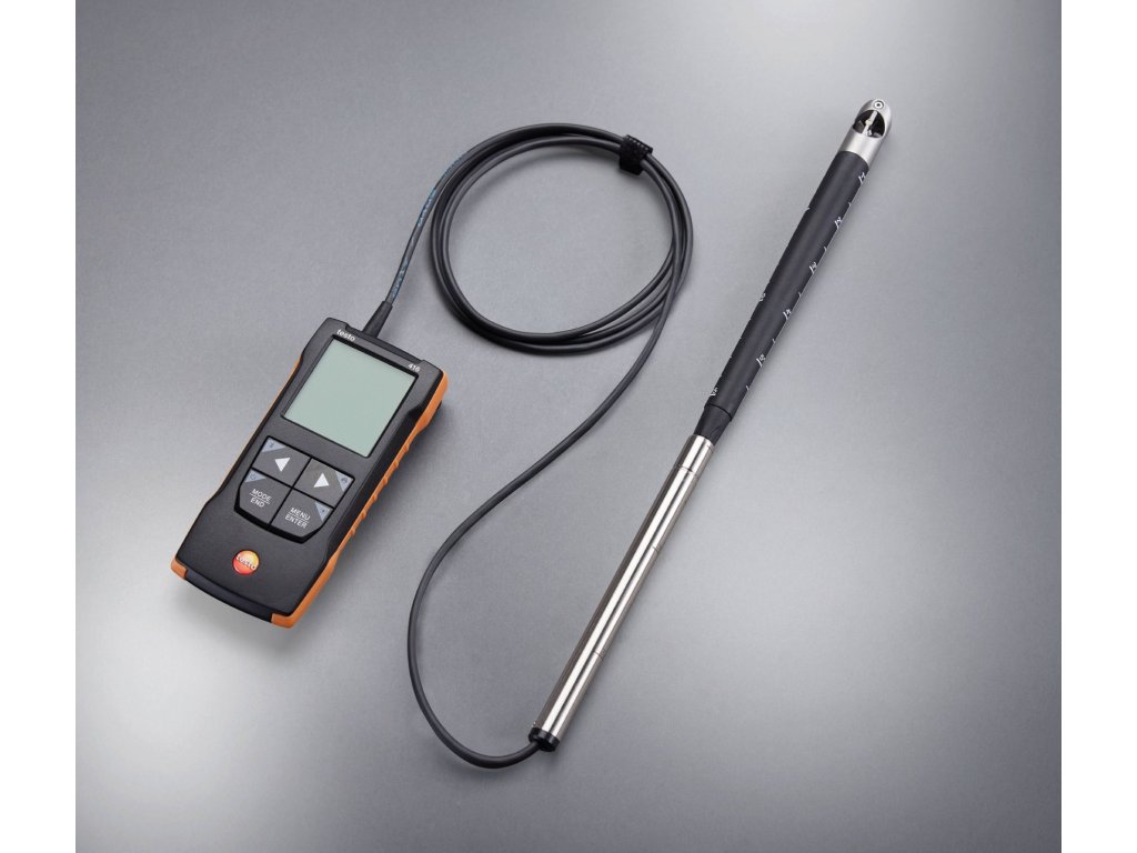 - testo 416 – vrtulkový anemometr s 16mm vrtulkou a s připojením k aplikaci, pevně připojená teleskopická sonda (max. 850 mm)
