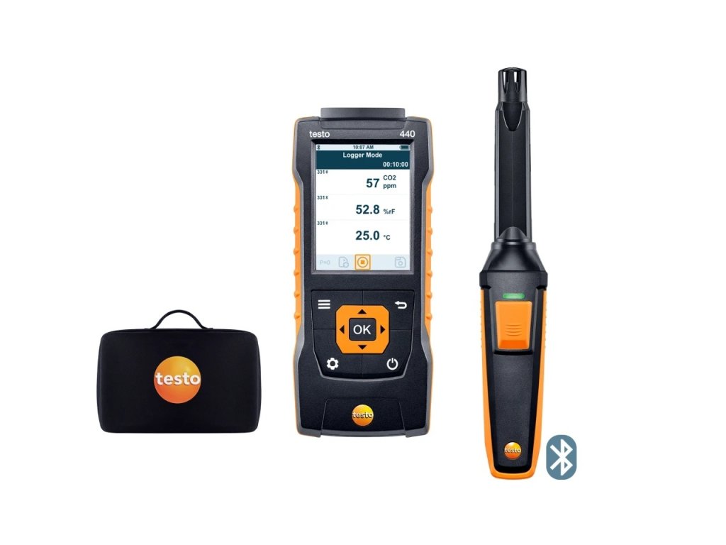 Sada pro posouzení kvality vzduchu v místnosti (Indoor Air Quality). Přístroj pro měření klimatických veličin testo 440 a sondu pro měření CO2 s Bluetooth vč. teplotního a vlhkostního senzoru dostanete bezpečně uloženou v kufru. Tak můžete se svojí prací rovnou začít!- Intuitivní: jasně strukturované menu měření pro dlouhodobé měření a paralelní měření koncentrace CO2, vlhkosti a teploty vzduchu ve vnitřních prostorech