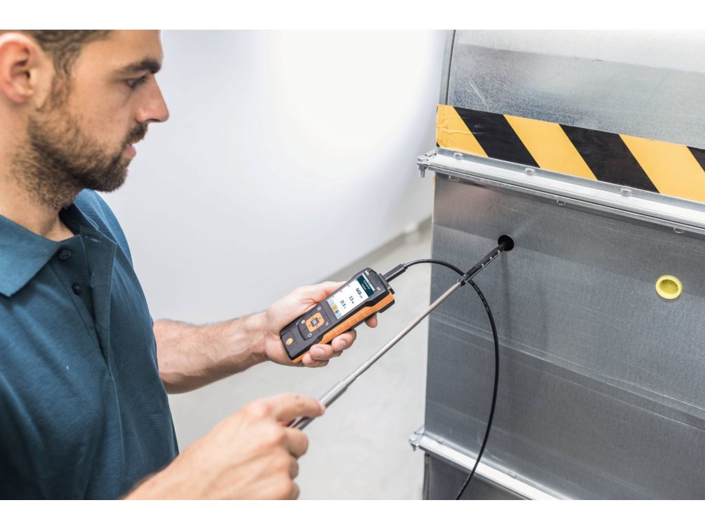 Sada pro měření ve ventilačním kanálu: přístroj pro měření klimatických veličin testo 440 a sondu se žhaveným drátkem (Ø 9 mm) vč. teplotního senzoru dostanete bezpečně uloženou v kufru. Tak můžete se svojí prací rovnou začít!