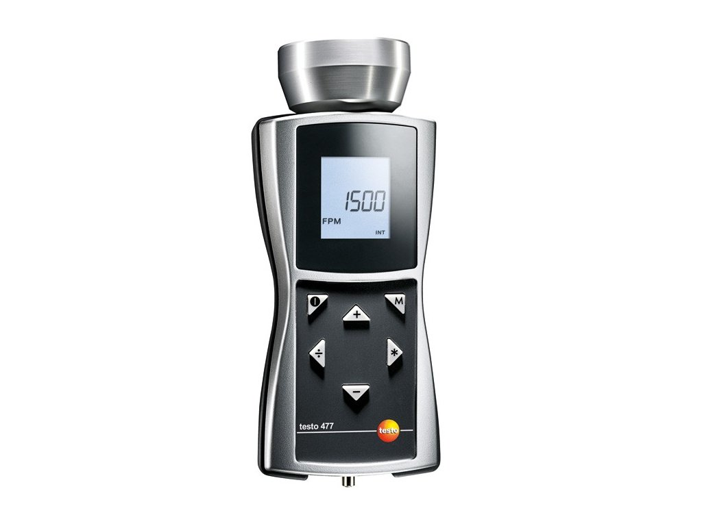 Stroboskopický LED otáčkoměr testo 477 umožňuje díky stroboskopickému jevu měření otáček a nebo kmitočku periodických pohybů. To umožňuje kontrolu velmi malých, nepřístupných a rychle se pohybujících součástí strojů.