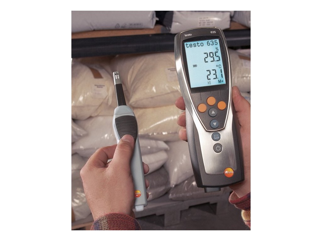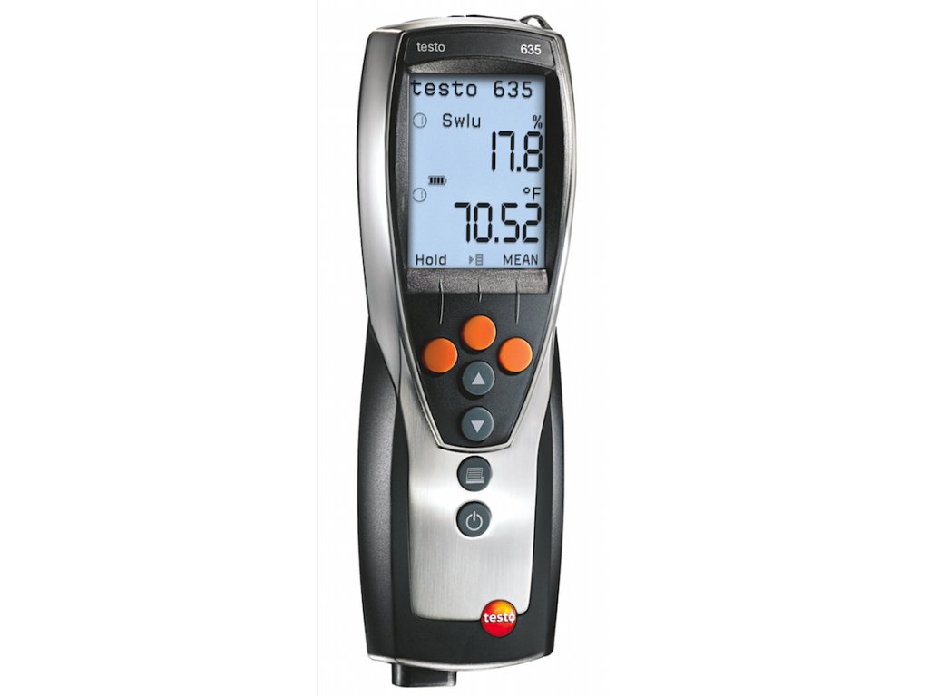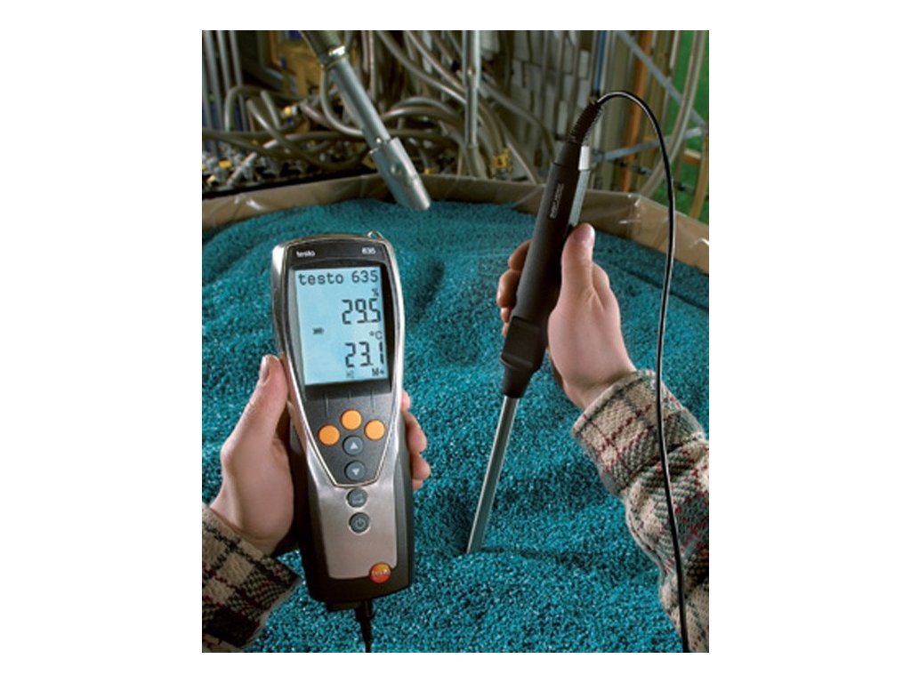 Měřící přístroj pro měření vlhkosti vzduchu, kompenzované vlhkosti materiálu a pro měření rosného bodu v tlakových systémech. Bezdrátově, tzn. s přenosem měřených dat pomocí rádiového signálu, mohou být zobrazovány až 3 teplotní nebo vlhkostní sondy. Naměřená data mohou být přenášena přes infračervené rozhraní do tiskárny protokolů Testo. Při cyklickém tisku je možno tisknout naměřená data např. jednou za minutu. Pro analyzování vlhkosti na stropech a zdech zobrazuje testo 635 přímo vzdálenost rosného bodu mezi vzduchem v místnosti a povrchem zdi. Pro sledování rosného bodu v tlakových systémech jsou k dispozici přesné sondy až do -60°C tpd. Vlhkostní senzor vyvinutý firmou Testo je celosvětově patentově chráněn a vykazuje vynikající vlastnosti ohledně přesnosti, dlouhodobé stability, tepelné odolnosti a robustnosti.Výhody