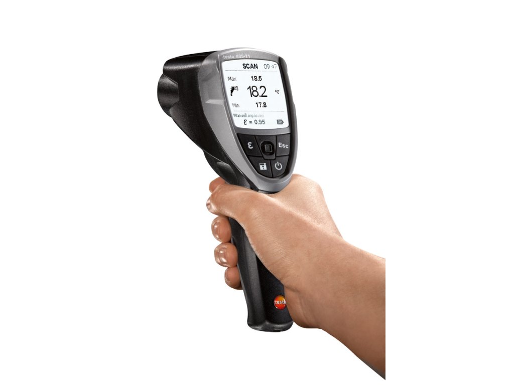 Praktický infračervený teploměr testo 835-T1 nabízí největší možnou jistotu a přesnost při měření teploty menších objektů ze střední vzdálenosti.- Spolehlivé IR měření do 600 °C