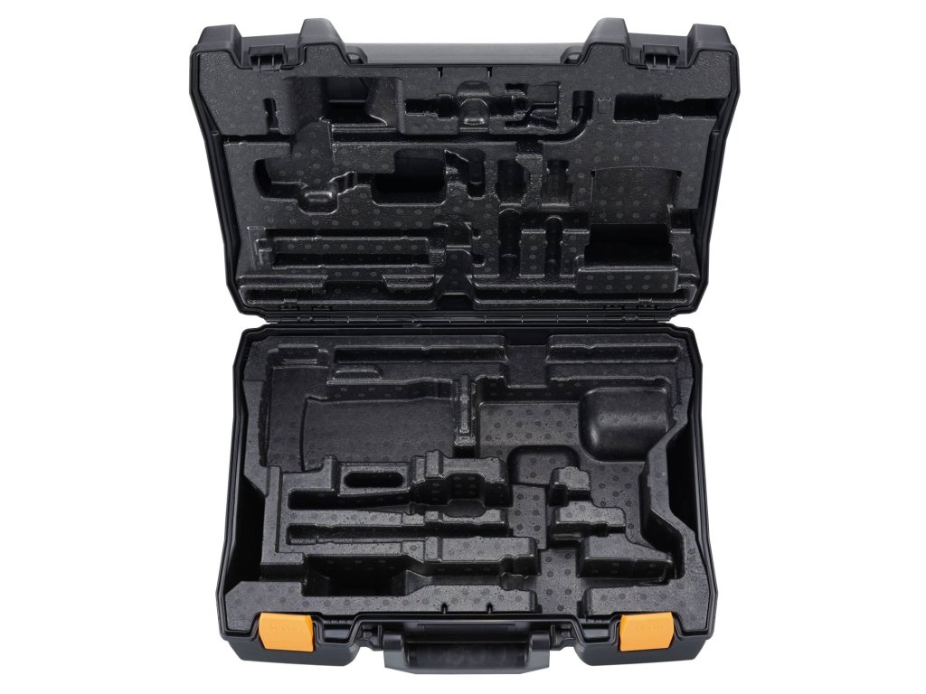 Bezpečné uložení zařízení pro měření průtoku v robustním transportním kufru: Kufr má speciální přihrádky, které nabízí úložný prostor pro vhodné měřicí přístroje (např. Testo 400), příslušenství a sondy.