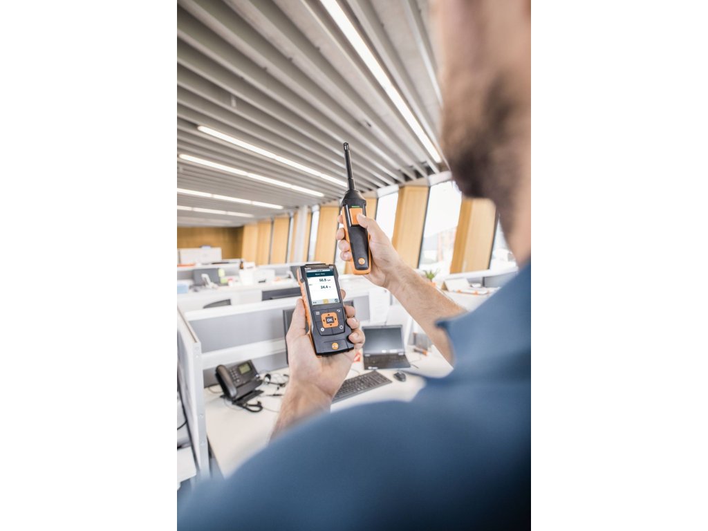 Pro měření ve skladovacích, chladicích a pracovních prostorech, ve ventilačních kanálech a také na chladicích zařízeních a tepelných čerpadlech: vlhkostní – teplotní sondou změříte (za pomoci vhodného měřicího přístroje) relativní vlhkost a teplotu vzduchu. Naměřené hodnoty se přenášejí přes Bluetooth přímo do Vašeho měřicího přístroje – měříte tak velmi komfortně.- Intuitivní: jasně strukturované menu pro dlouhodobé měření a paralelní měření relativní vlhkosti a teploty vzduchu ve vnitřních prostorech