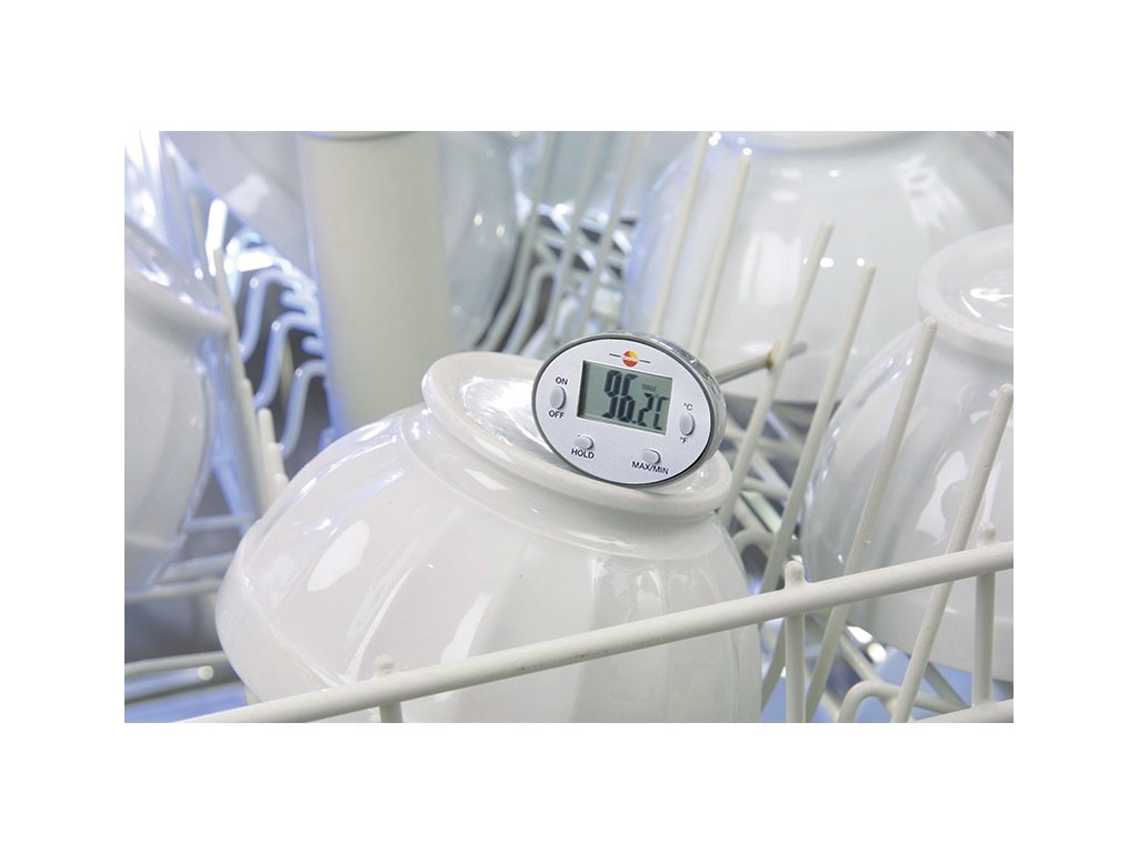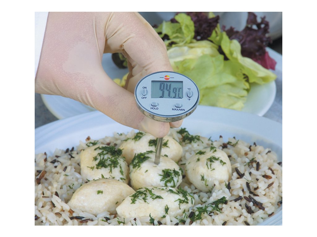 Robustní, vodotěsný miniteploměr, který po použití - například po namátkovém kontrolním měření u potravin - lze jednoduše opláchnout pod tekoucí vodou nebo jej vložit do myčky nádobí. Je vhodný pro každou aplikaci: do tuhých nebo práškových hmot, ve vodě nebo ve vzduchu.- Vodotěsný, krytí IP67