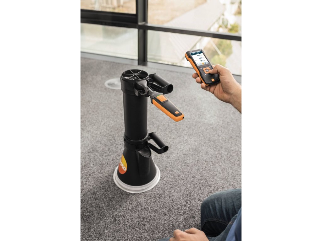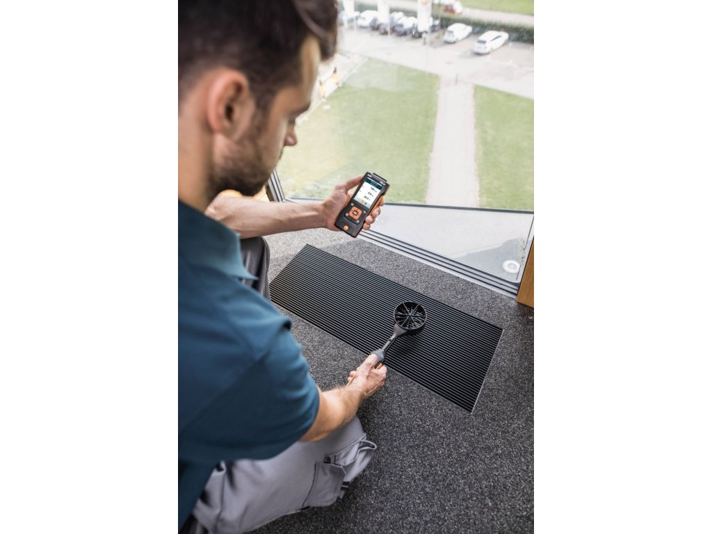 - Komfortní: propojení Bluetooth mezi měřicím přístrojem a sondou, s praktickým tlačítkem na rukojeti pro ukládání jednotlivých naměřených hodnot, pohodlné měření na stropních vyústkách s volitelným teleskopem (délka až 1 m)