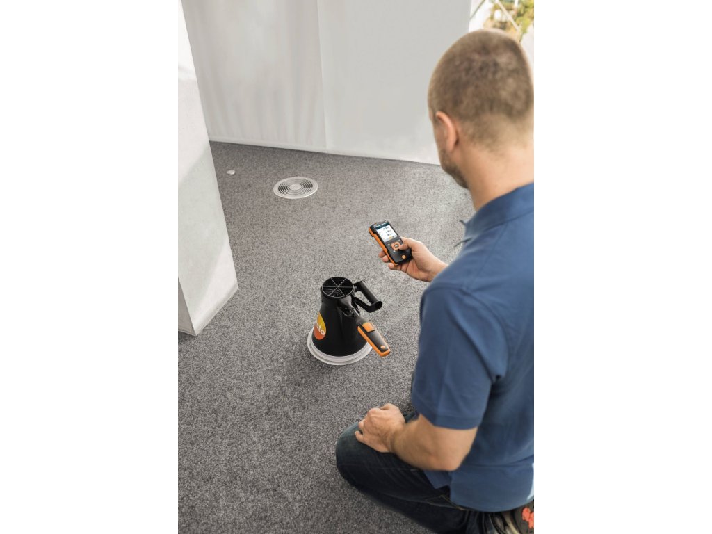 Talířové ventily, ventilační mřížky a difuzory: pro komfortní a přesné měření na talířových ventilech a ventilačních mřížkách Vám doporučujeme použít vrtulkovou sondu spolu se sadou trychtýřů testovent 417 (objednejte prosím zvlášť). Je tak zaručena jednoduchá kontrola přiváděného a odpadního vzduchu – jako například u systému nuceného větrání obytných prostorů.